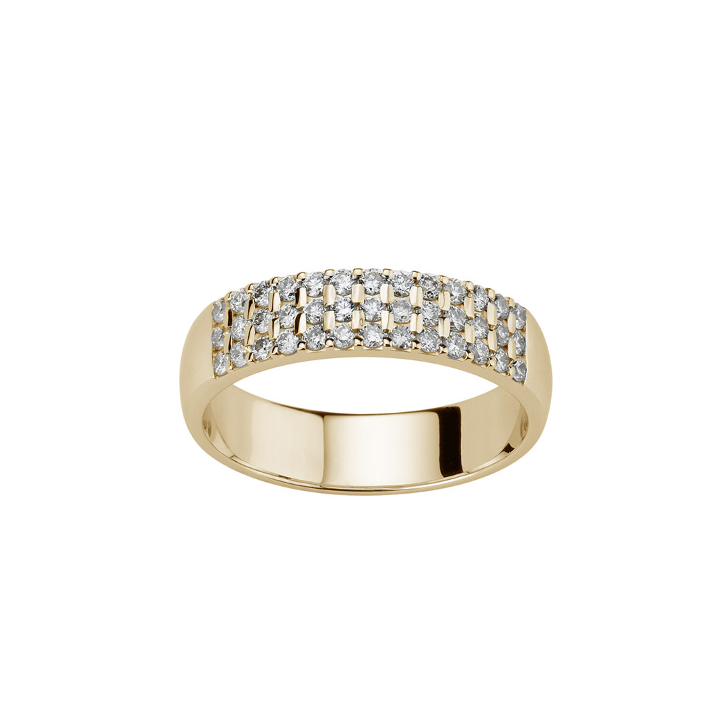 Alliance 3 rangs serti barrette est en Or 750 / 1000 (18K) . Ce bijoux est orné de de diamants. Cette Alliance 3 rangs serti barrette pèse 3,82g. Elle est en Or 750 / 1000 (18K) Jaune Ref: MS/313/682010-D-DJ-39-/SS