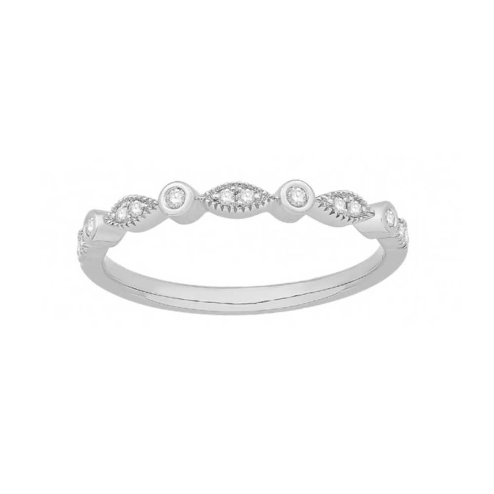 Alliance demi tour serti clos et navettes Diamants 0.09 cts G SI2 est en Or 750 / 1000 (18K) . Ce bijoux est orné de de diamants. Cette Alliance demi tour serti clos et navettes Diamants 0.09 cts G SI2 pèse 2,17g. Elle est en Or 750 / 1000 (18K) Blanc   Ref: MS/313/8ALD0111S2W/SS