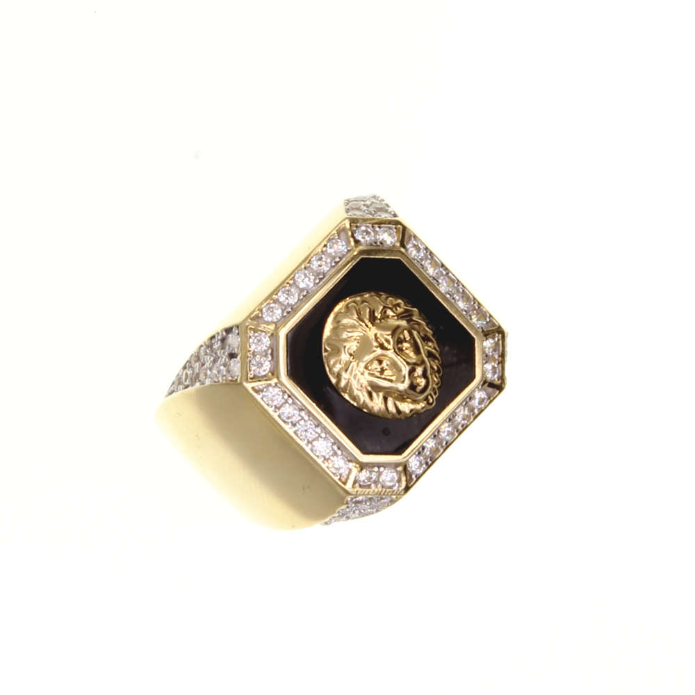 Chevalière table carree et tete de lion est en Or 750 / 1000 (18K) . Ce bijoux est orné de d’oxydes de zirconium. Cette Chevalière table carree et tete de lion pèse 12,93g. Elle est en Or 750 / 1000 (18K) Jaune Ref: MS/316/084059/SS