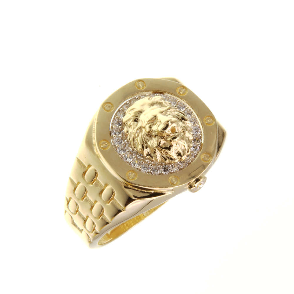 Chevalière tete de lion et motfs vis est en Or 750 / 1000 (18K) . Ce bijoux est orné de d’oxydes de zirconium. Cette Chevalière tete de lion et motfs vis pèse 8,53g. Elle est en Or 750 / 1000 (18K) Jaune Ref: MS/316/084566/SS