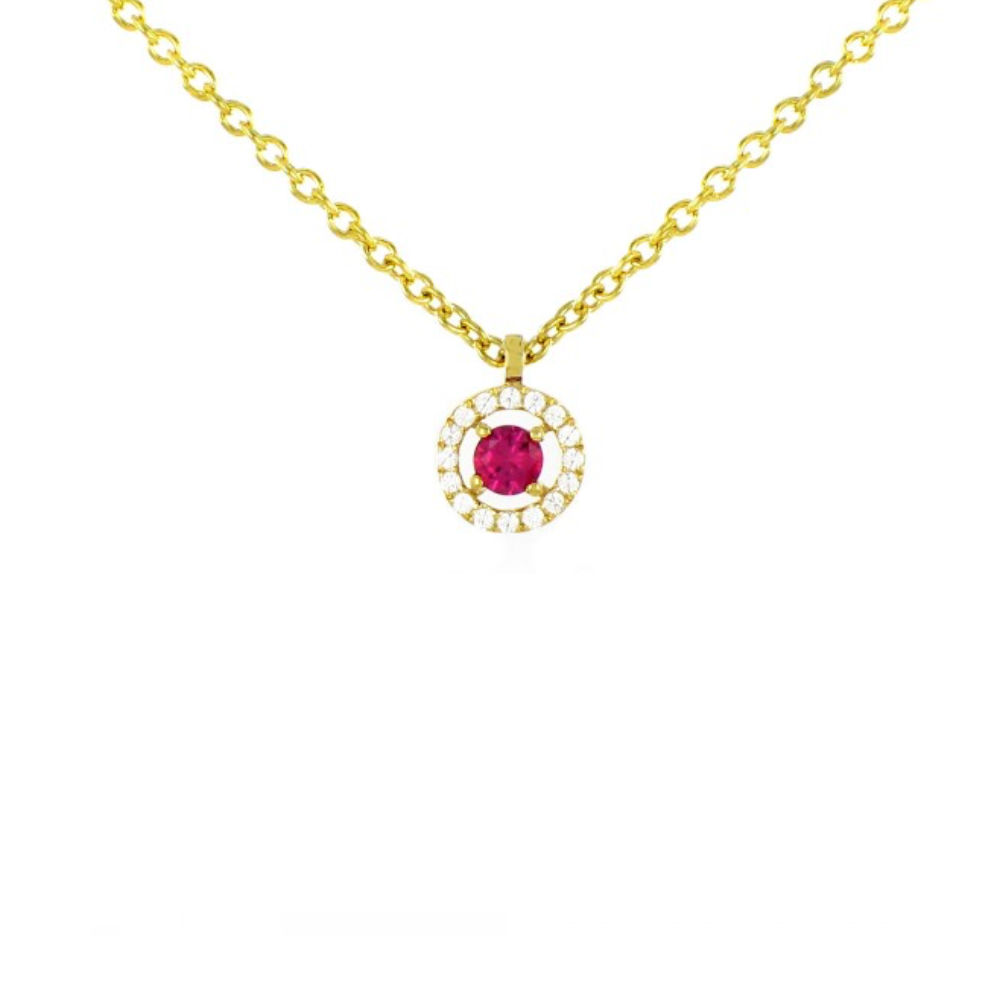 Collier motif rubis et diamants est en Or 750 / 1000 (18K) . Ce bijoux est orné de de diamants. Cette Collier motif rubis et diamants pèse 1,61g. Elle est en Or 750 / 1000 (18K) Jaune Ref: MS/337/8COL6007RUY/SS