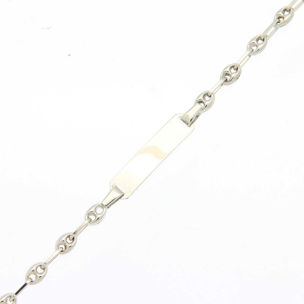 Identité bébé maille graine de café et plaque rectangulaire est en Or 750 / 1000 (18K) . Ce bijoux ne comporte pas de pierres. Cette Identité bébé maille graine de café et plaque rectangulaire pèse 3.5g. Elle est en Or 750 / 1000 (18K) Blanc   Ref: MS/324/B3751/SS