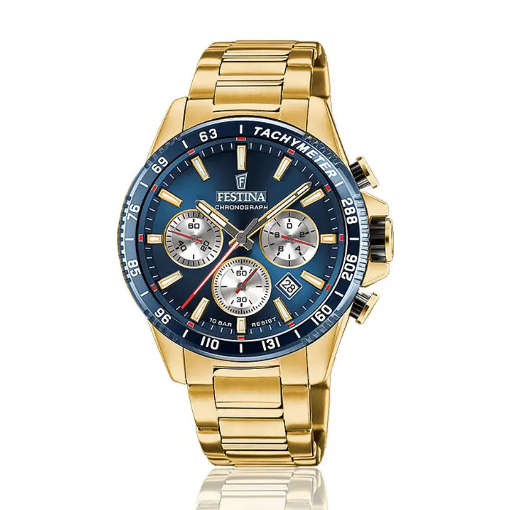 Elle possède un bracelet en Acier . Cette montre Homme possède un bracelet de couleur Pl Or Jaune . Le cadran est Pl Or Jaune et le fond est Bleu.