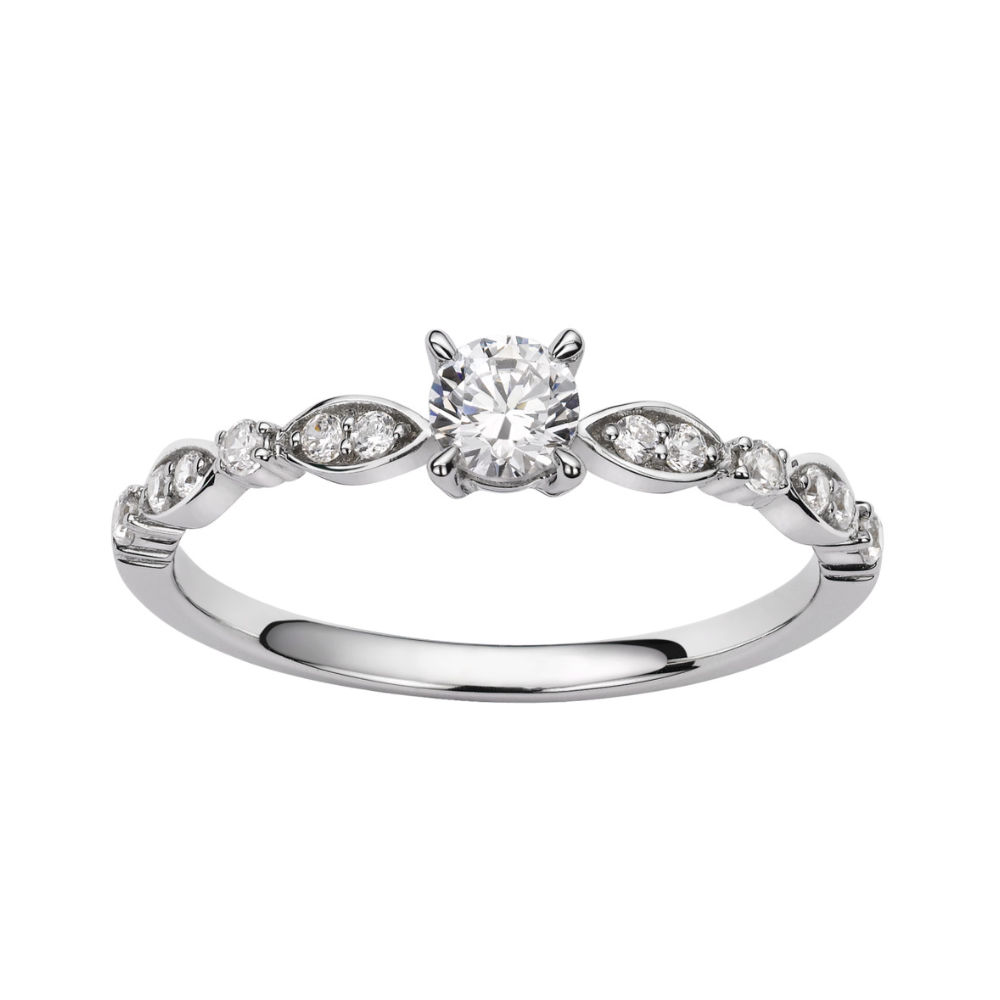 Solitaire accompagné 4 griffes et navette 0.15Ct au centre et 0.29Ct au total est en Or 750 / 1000 (18K) . Ce bijoux est orné de de diamants. Cette Solitaire accompagné 4 griffes et navette 0.15Ct au centre et 0.29Ct au total pèse 1,58g. Elle est en Or 750 / 1000 (18K) Blanc Ref: MS/313/4S116-DG-DT-H04-15/SS