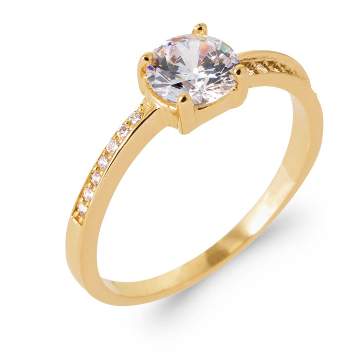 Solitaire accompagne centre 4 griffes est en Plaqué Or . Ce bijoux est orné de d’oxydes de zirconium. Cette Solitaire accompagne centre 4 griffes pèse 0g. Elle est en Plaqué Or Jaune Ref: MS/417/2249210/SS