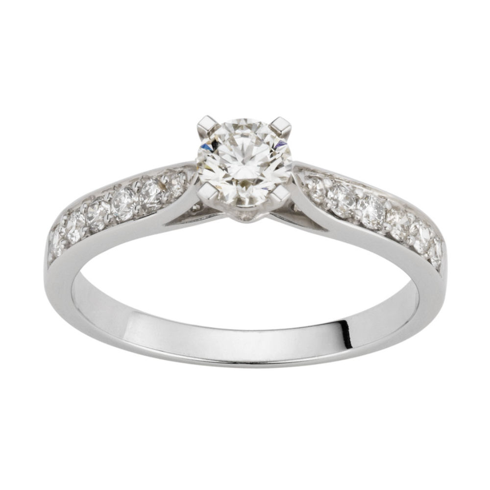 Solitaire acompagne serti grain et centre 4 griffes 0.20Cts et 0.396Cts au total est en Or 750 / 1000 (18K) . Ce bijoux est orné de de diamants. Cette Solitaire acompagne serti grain et centre 4 griffes 0.20Cts et 0.396Cts au total pèse 2,69g. Elle est en Or 750 / 1000 (18K) Blanc Ref: MS/313/4S041-DG-DT-H07-20/SS